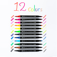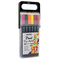 Aihao Permanent Fiber Tip 12-Color Plastic Box Art Marker Pens for Paper Dual-Sided Writing & Cap off Function